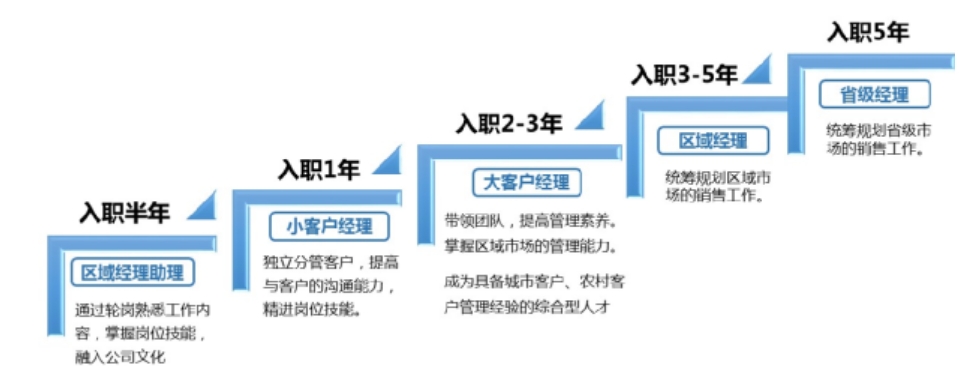 根据公司能者上、庸者下、平者让,不论资排辈,给年轻人机会的用人理念,营销将才作为全国销售市场星级省级经理储备军,由集团、销售公司、市场“三方培养、定期跟踪”,省级市场总经理负责帮带,销售公司总经理、人力资源部部长等集团高管长期联络与关注!目标是3年时间培养成为优秀区域经理,5年后成长为新星省级经理!
