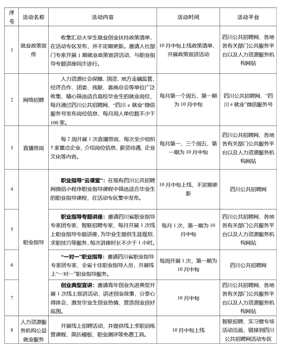 相关内容同时通过“四川公共招聘网”、“四川e就业”微信服务号发布。