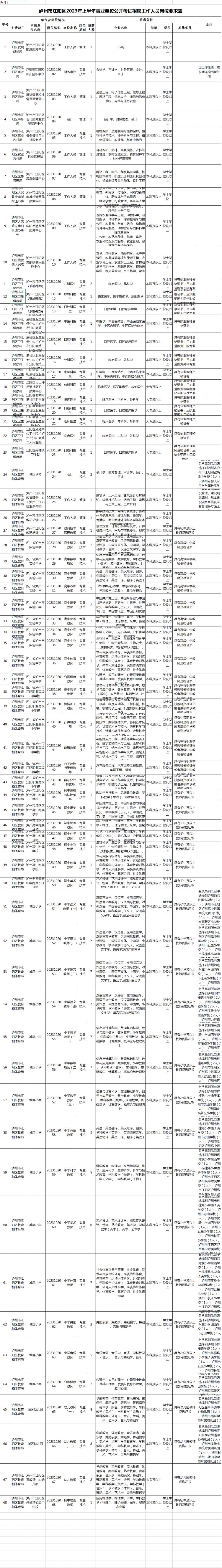 附件:附件1 泸州市江阳区2023年上半年事业单位公开考试招聘工作人员岗位要求表.xls