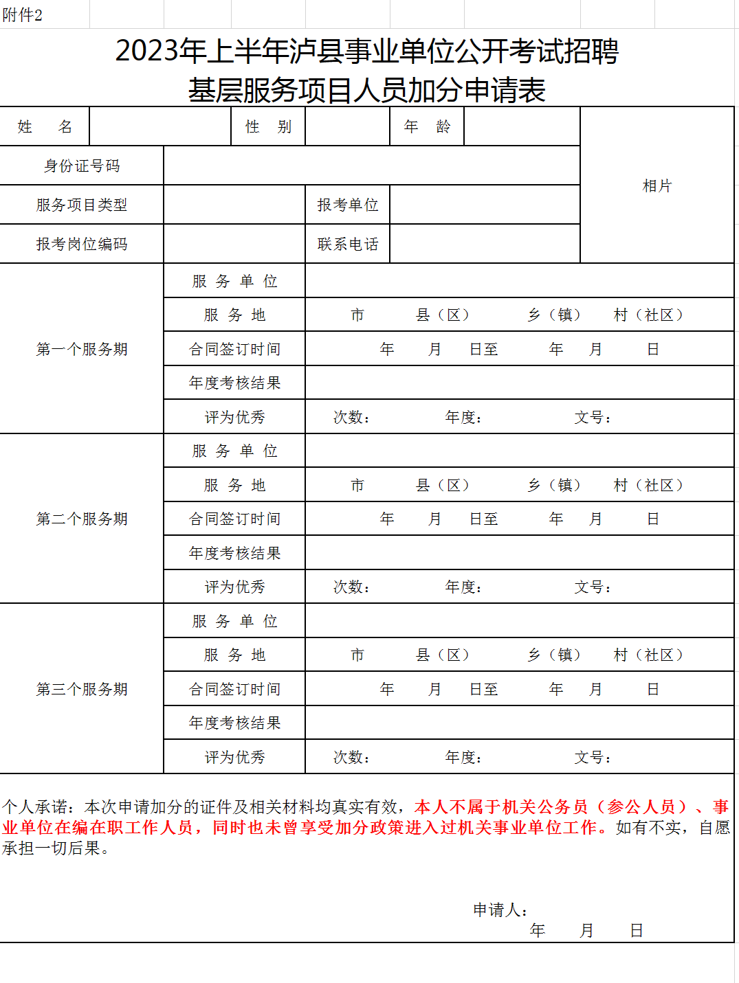 (1)“大学生志愿服务西部计划”、“三支一扶”计划以及“农村义务教育阶段学校教师特设岗位计划”和大学生村(社区)干部,须提供本人亲笔签名的加分申请表(附件2)、考核材料、服务合同(协议)和服务证书、身份证、报名信息表等材料。