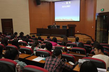 随后,2012级考研成功的甄宏达与王晓美为大家做了简单的考研经验交流,他们就考研的时间、方向、专业的选择及学校的选择等方面为2013级的同学们提出了自己的想法与意见。之后西南民族大学文学与新闻传播学院副院长杨荣教授就考研方面的一些问题做了详细阐述。他建议同学们要明确和慎重选择学校和专业,尽量选择自己感兴趣的专业,不提倡跨专业考试;考后调剂时要注意把握时间,以免耽误最佳时机。接着杨教授向大家介绍了中国语言文学专业的考研学科情况和招生简章,并告诉大家初试和复试既要注重基础知识又要注重综合素质的考察,笔试尤其要注重外语学科,另一方面还要保持良好的备考心理,找准自己的定位,诚信备考。