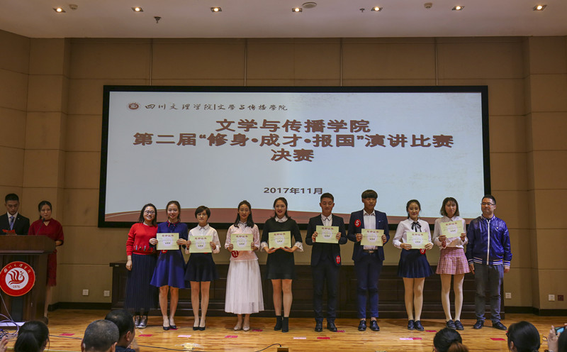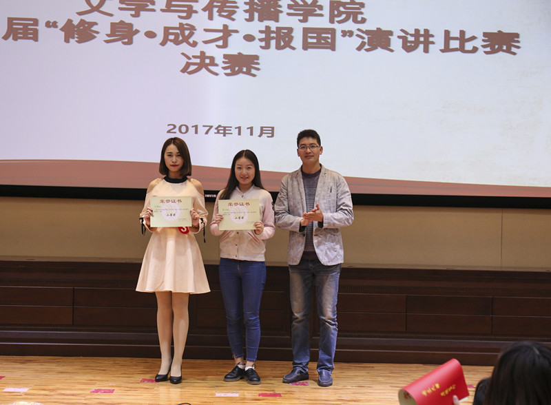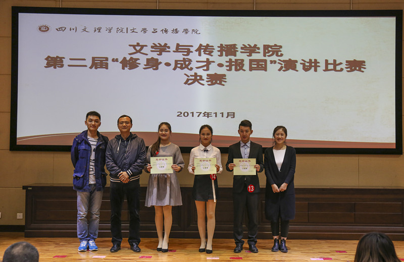 在党的十九大召开之后,我们中华民族又踏上了新的征程,为了整个中华民族的伟大复兴,我们每个青年都有责任和义务去报效祖国。11月7日晚,我院在图书信息大楼学术报告A厅成功了举办“修身·成才·报国”主题演讲比赛决赛。参加本次决赛的选手是在复赛中脱颖而出的十四位佼佼者,我院专业教师胡蓉、陈海平、刘长宇、李慧、胡苹、朱妍娇以及播音与主持艺术专业大四学生王旭伟担任决赛评委,学院党总支书记赵定贵教授、党总支副书记张桢以及政治辅导员邓超、孙琪出席本次活动。