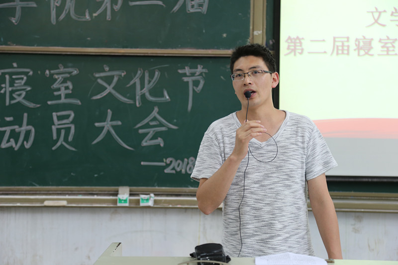 邓超老师随后对本届寝室文化艺术节活动具体工作做详细部署。并介绍了此次寝室文化节的内涵及意义,他提出寝室文化节活动不仅可以促进舍风建设,优化育人环境,还可以提升寝室的幸福指数。 他表示,本次活动已经成为学院重要的品牌学生活动,因此,同学们应从“创意、美观、整洁、卫生”四个方面着手,选出优秀典型,将其公布并加以对比,引起学生对居住环境的重视。他希望同学们能积极参与此次活动,创先争优。