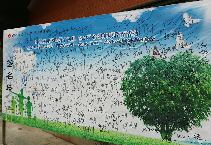 伴随着“巴山南,州河旁,艰难困苦创学堂,玉汝于成筑梦想……”的优美歌声,学院举行了以“阳光心理,快乐起航”为主题的大型签名活动,精心准备小礼品以增强活动的吸引力、扩大力和影响力。只见展板前人头攒动,络绎不绝,来往的同学们纷纷拿起笔写下自己的近期烦恼和未来计划,丢进心灵收纳箱中,并在展板上签下自己的名字。此外,我院同学们还积极参加了“心灵美文比赛”、“心灵留声机”等多个心理健康活动,通过这些活动,同学们宣泄了情绪、放松了心情,收获了成长,同时也在心理体验中获得知识、提升修养。