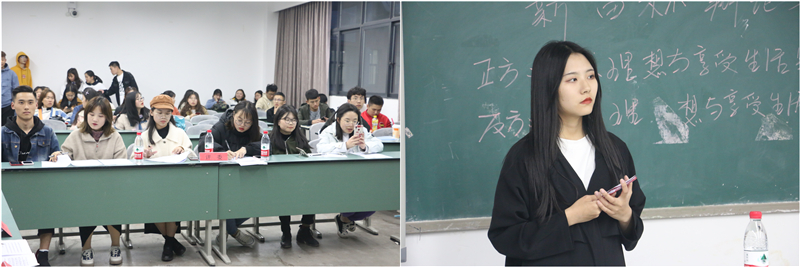 第二场比赛在传媒楼4028教室拉开帷幕。参加该场比赛的两个辩队分别是由2018级广播电视编导专业12班、播音与主持艺术专业13班组成的正方7队以及由汉语国际教育专业5班组成的反方3队。由我院前两届优秀辩手余芷柔、叶馨、曾媛媛作为评委出席。