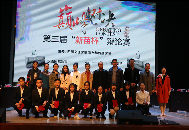 3月29日晚7点,我院第三届“新苗杯”辩论赛决赛在艺术传媒楼多功能厅顺利举行,本次比赛选手来自2018级汉语国际教育专业和广播电视学专业。我院党总支书记赵定贵教授、党总支副书记、副院长张桢老师,学工办副主任兼团总支副书记宋涛老师以及辅导员孙琪老师莅临比赛现场。我院汉语言文学专业张松老师、汉语国际教育专业胡苹老师、广播电视学专业张月月老师、播音与主持艺术专业尚亮老师和彭娜老师出席担任评委。现场座无虚席,观众们翘首等待辩论赛开始。此次比赛秉承“关注社会热点和时代动向”主旨,意在提高大学生的思维能力和精神文化水平。