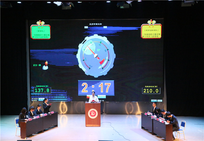 本次辩论赛由汉语国际教育专业学生组成的正方代表队和由广播电视学专业学生组成的反方代表队围绕“短视频的火爆是精神文化丰富的体现还是精神文化匮乏的体现”展开辩论。比赛分为八个环节,总计时39分钟,即开篇立论、质询、驳论、对辩、质询小结、自由辩论以及总结陈词,在比赛最后由评委打分。