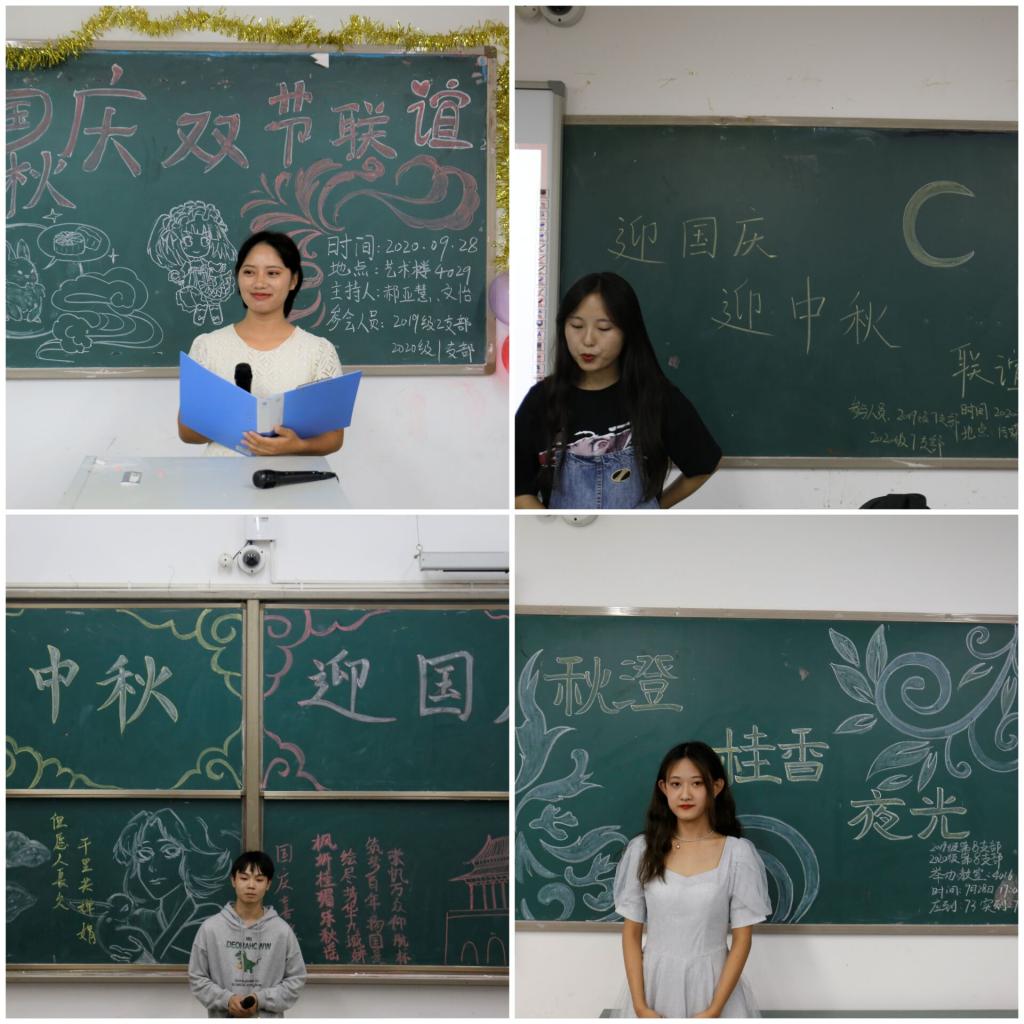 金秋送爽,丹桂飘香。为增进同学们彼此了解,深化友谊,让同学们感受到集体的温暖,在学校、学院找到归属感,值此双节来临之际,应学院要求,我院2019级、2020级各团支部分别于9月28日、30日晚开展“迎国庆、迎中秋,双节联谊会”活动。