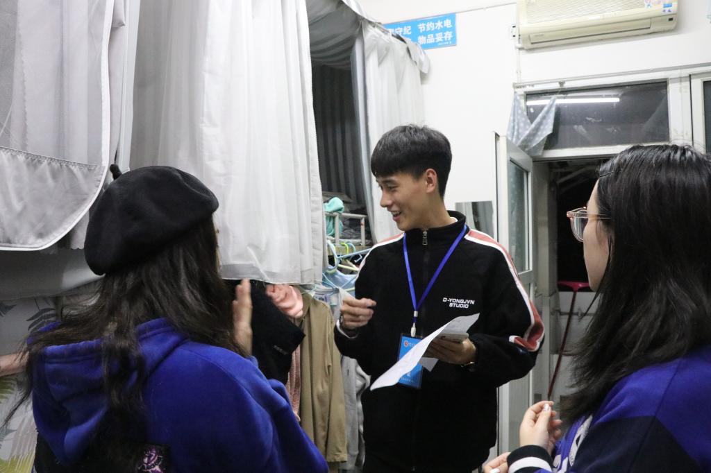 为深入了解学生生活,迎接达州“四城同创”检查,10月17日晚,我院学生会团总支组织人员分组对学生寝室进行走访,走访工作由学院团总支常务副书记刘乐朗和学生会主席贾少君主持。