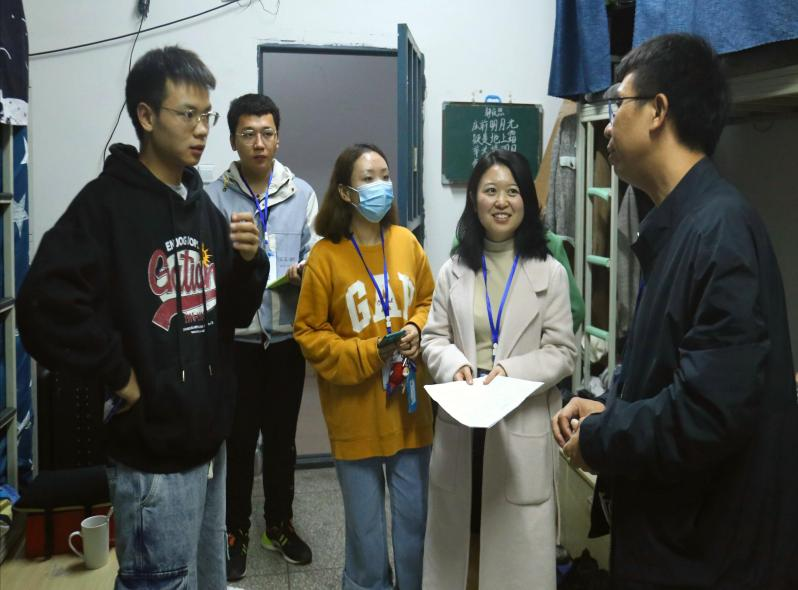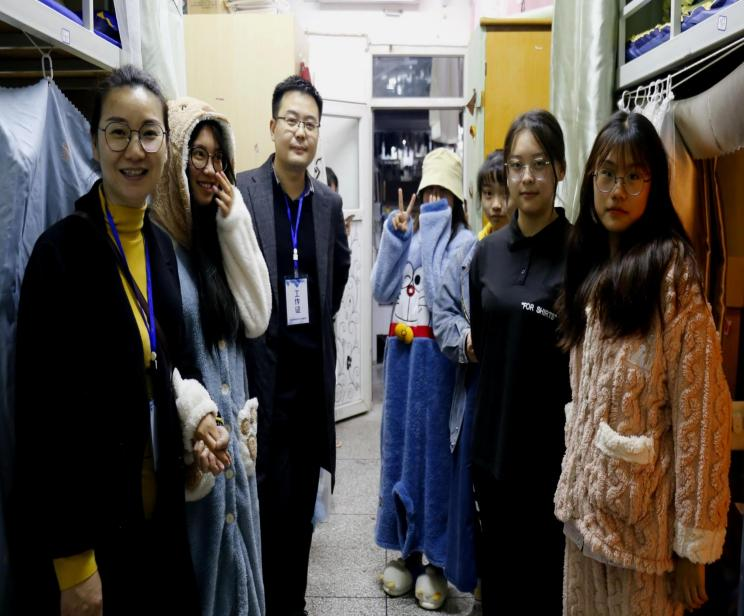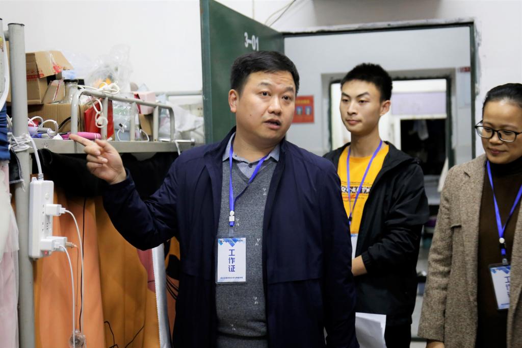 学院党总支书记冉林在走访过程中与同学们亲切交流并了解同学们的诉求,详细询问了学习和生活情况;提醒同学养成安全用电习惯,保持良好内务卫生。
