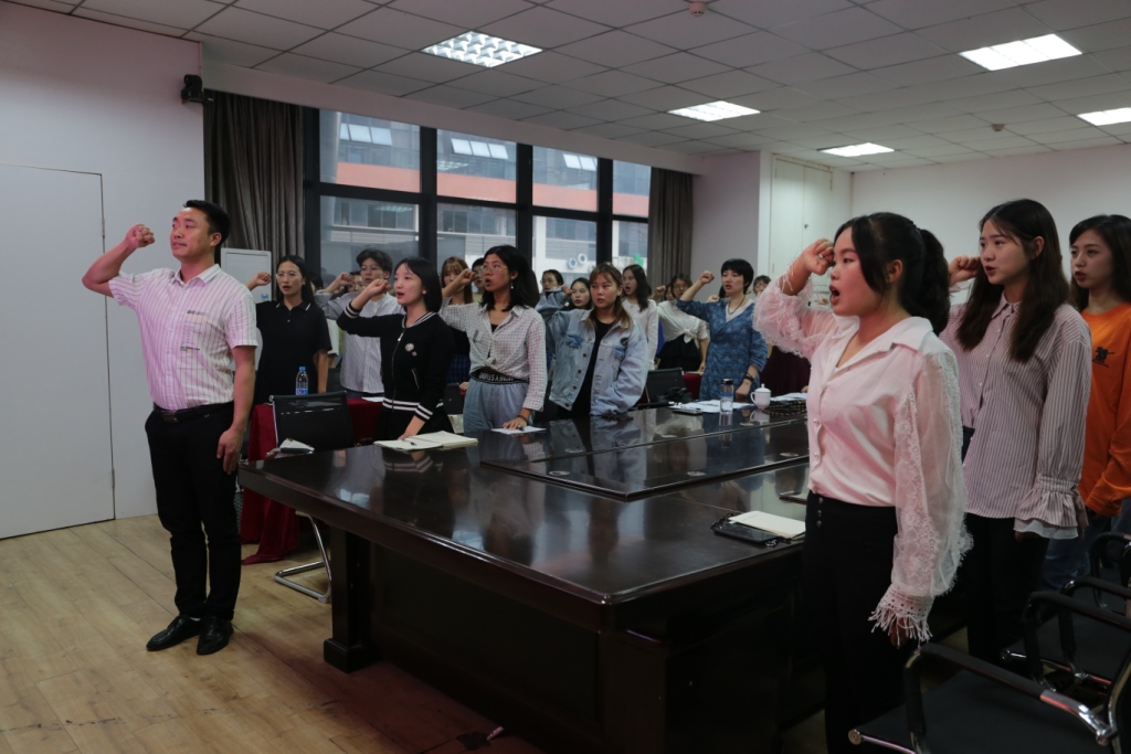 李永江老师带领在场全体党员起立,举起右手,重温入党誓词,本次党课在铿锵有力的入党誓词声中结束。