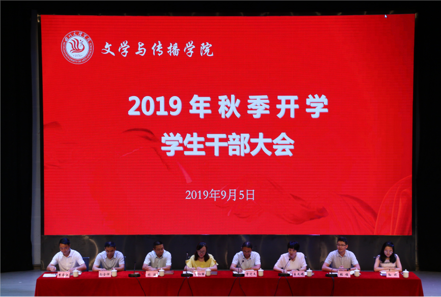 9月5日下午,我院“2019年秋季开学学生干部大会”在艺术传媒大楼多功能厅召开。学院党总支书记李红梅、院长曾宪文、正处级组织员张波、党总支副书记王文娟、副院长彭金祥、副院长张桢、辅导员孙琪和李永江出席会议,学院新一届团总支、学生会干部以及各班团支书、班长参加此次会议。会议由王文娟主持。