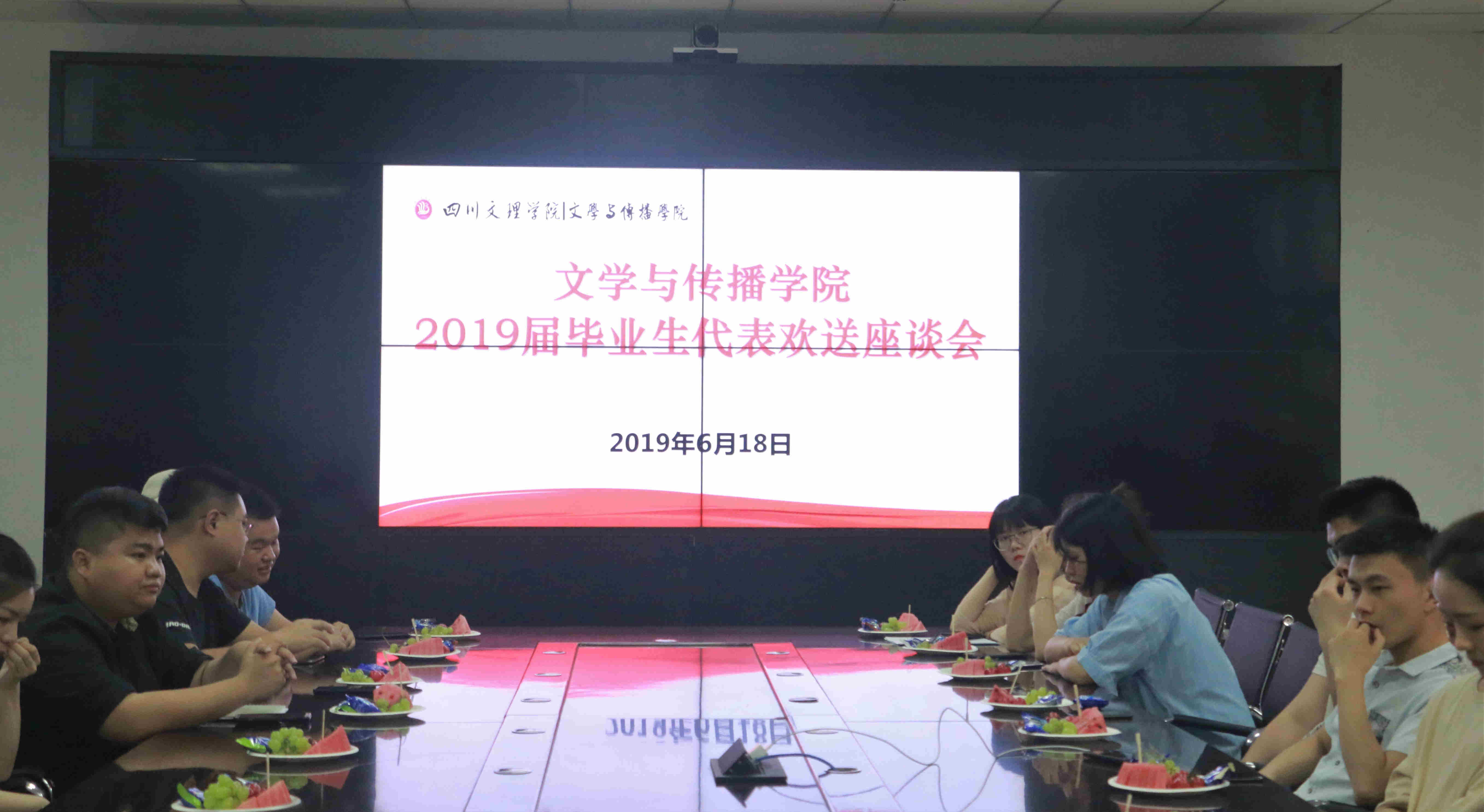 6月18日,我院在1007会议室组织召开了2019届毕业生代表欢送座谈会。与会老师有文学与传播学院学院院长杜松柏老师、中国语言学教研室主任成立老师、副主任郑岚心老师、广播电视教研室副主任、实验室主任陈海平老师,学工办副主任、团总支副书记宋涛老师,毕业班辅导员刘清欢老师、唐颜老师、邓超老师,专职辅导员李永江老师。文学与传播学院党总支副书记、副院长张桢书记出席并主持座谈会。