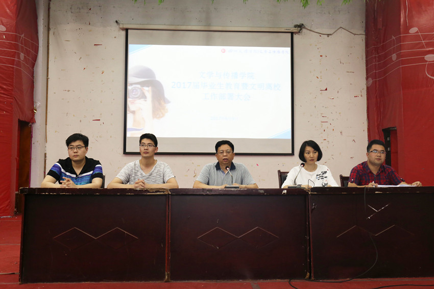 为了切实做好毕业生离校工作,6月9日下午,文学与传播学院在莲湖校区一教楼126教室召开2017届毕业生教育暨文明离校工作部署大会。学院院长杜松柏教授、院党总支副书记张桢老师、学工办主任兼团总支书记王文娟老师、辅导员邓超、文敏熙老师及2017届全体毕业生参加了会议。会议由王文娟老师主持。