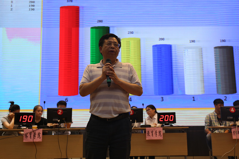 杜院长就本次比赛的情况进行了详尽地总结和点评。杜院长首先对本次参赛同学们的表现都给予了高度的肯定和赞扬。本次知识竞赛涉及面较广,选手们都能应答如流,并且准确度极高,令人钦佩,特别是那些热爱国学和诗词经典的理科同学们,更值得我们点赞!同学们利用课余时间认真准备,精心演练,充分展示了才华和能力,增强了团队凝聚力。随后,杜院长也指出了本次竞赛的不足之处,同学们对诗词细节掌握的程度不够,字句讲究不够精准等。希望获奖的同学们戒骄戒躁,胸怀若谷,在今后的学习生活中更加严格要求自己,孜孜不倦地学习,丰富国学知识素养,完善自身发展。