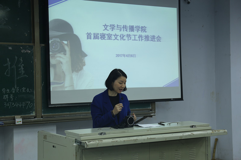 首先,王文娟老师介绍了此次寝室文化节的内涵及意义,提出寝室文化节活动不仅可以促进舍风建设,优化育人环境,还可以提升寝室的幸福指数。强调同学们之间的交流和协调能力,凸现新一代大学生的青春气息与蓬勃朝气,同时王文娟老师要求学生干部要积极配合学校落实好寝室文化节的相关活动,她希望同学们能积极参与此次活动,创先争优,争做“文明优秀寝室”。