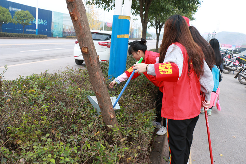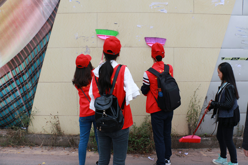 到达清理地点后,志愿者们分为两小分队,对路面上的垃圾、绿化里的脏物、路边围墙上的小广告以及垃圾桶周围的垃圾都进行了逐一清理。志愿者们全身心的投入到的环保清洁过程中,成为了一道亮丽的风景线。