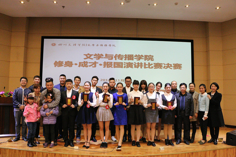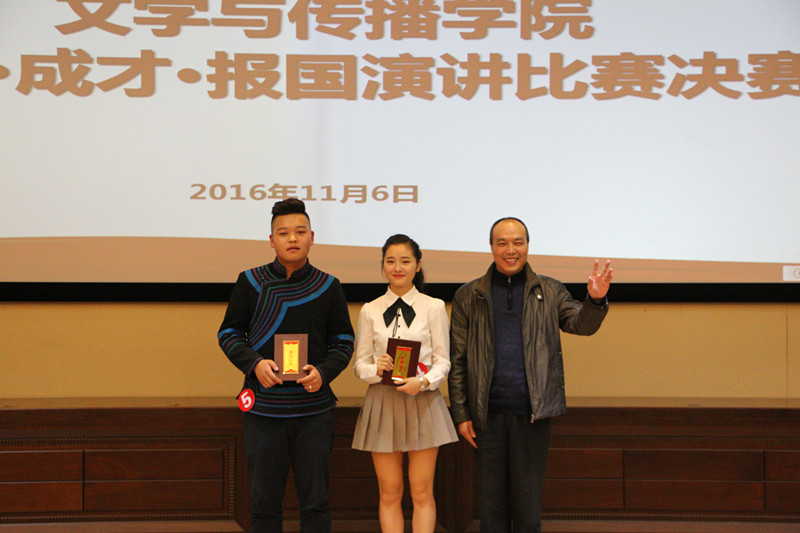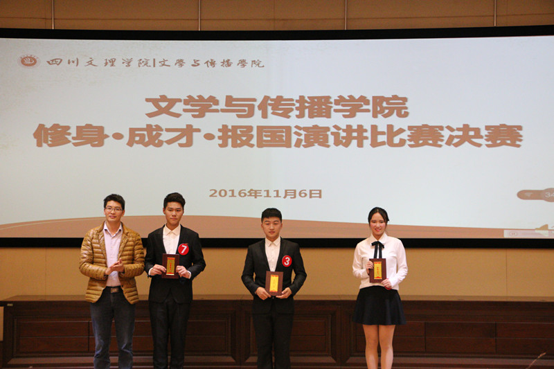 11月6日晚,学院在学术报告A厅举行了“修身•成才•报国”演讲比赛决赛。学院党总支书记赵定贵教授、院长杜松柏教授、党总支副书记张桢老师、学工办主任(兼团总支书记)王文娟老师、辅导员邓超老师、财经管理学院2016级财务管理专业的老挝留学生、学校各兄弟二级学院团总支副书记、学生会主席、我院本届学生干部及学院2016级全体新生和高年级学生代表观看了比赛。
