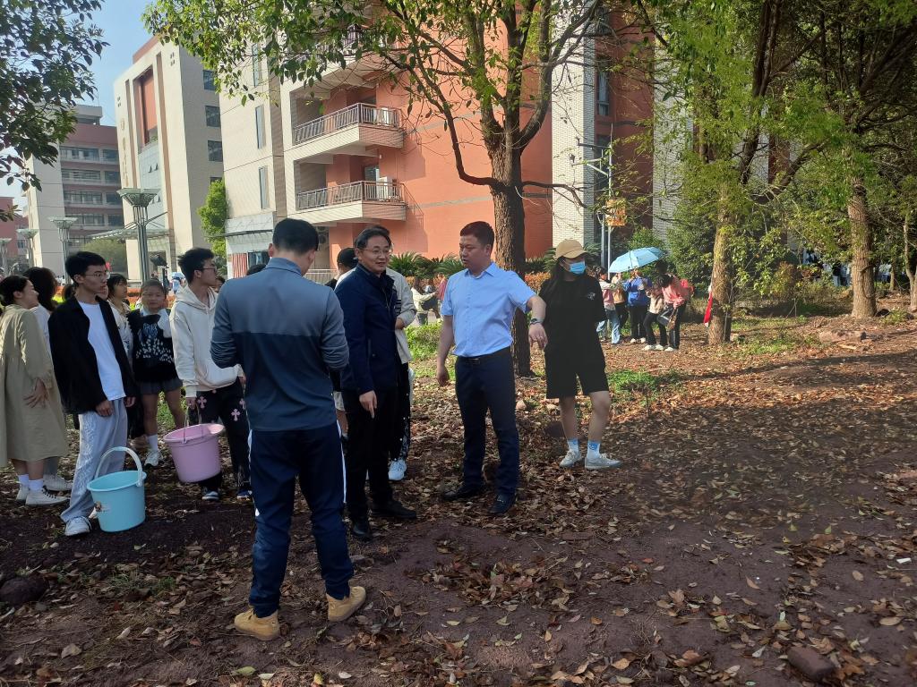 我院党总支书记冉林,院长曾宪文、党总支副书记张俊峰、辅导员宋涛、吴泉兴等来到劳动实践现场与同学们共同参与活动,向同学们讲明安全防范要点以及活动精神。