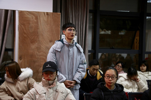 活动伊始,在场同学齐唱团歌。齐唱团歌结束后,组织部的同学播放了两部短片《历史告诉未来》与《我们一起走过》。两部短片分别从不同地区与角度,展示了各个地区的发展变化。那些改革开放的典型地区40年来取得的重大成就和发生的巨大变化尤为引人注目。人们生活水平不断提高,科技不断创新,我国改革开放所带来的不仅仅是物质上的保障,也使我们对国家充满自信。短片播放结束后,主持人邀请了几位同学分享观看感受。受邀同学积极谈论自己的感受。有的同学讲述了自己成长以来,亲身经历的以及听老一辈讲的改革开放以来的变化。随后,宋涛老师向同学们提出了一个问题:作为新时代的青年大学生,该如何在新时代再出发,承担起新时代赋予的使命和责任?围绕这个问题,同学们积极发言,结合自身的经历,谈论了他们对当代大学生在新时代中的使命和责任的理解:在学好自己专业的同时,也要不断培养自己的其它能力;关注时事,拓宽眼界的同时,要不断更新目标、坚定理想,既做“钉子户”,也当“改革家”。这样,才能回报社会乃至国家!最后,宋涛老师进行总结,特别强调同学们作为学生干部、共青团员要提高思想觉悟,在思想上积极向党组织靠拢,向党员同志学习,用社会主义核心价值观作为行为准则,要做好迎接社会挑战的思想准备,积极进取,争做新时代的引路人!