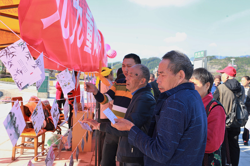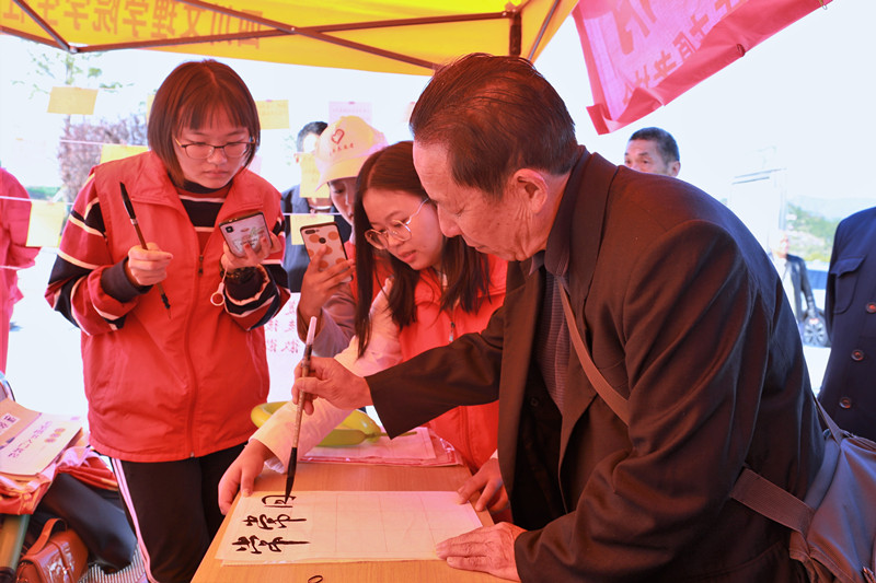 活动开始就引得了许多来往人员的驻足观望,也吸引了许多老人积极参与其中。有的老人提笔一展风采,有的进行了精彩的问答,有的引吭高歌赢得了在场观众阵阵掌声。与此同时,现场志愿者和老人们互相交流健康养生之道,而老人们也热情地分享他们的往事。志愿者把老人写的毛笔字挂在帐篷旁边,得到了许多路人的赞赏,许多小孩也闻声赶来,给老人送祝福。天气晴朗,在场其乐融融,无比温暖。