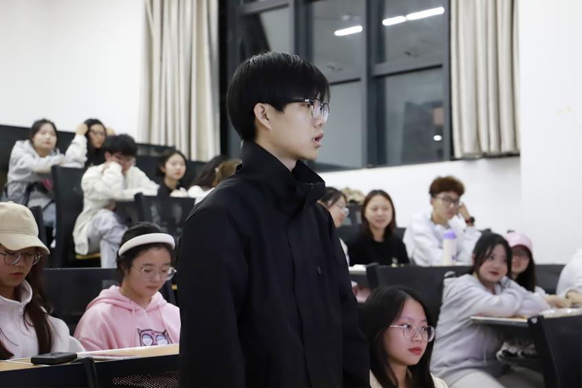 围绕活动主题,领学人王俊杰同学从“中国共产党与中国式现代化新道路”“新时代新作为”“学思想谈心得”三个方面为同学们做了详细的讲解。首先,他像向同学们介绍了新时代新征程中国共产党的使命任务以及中国式现代化的基本含义和五个特色。然后,通过讲述宇航员王亚平、考古学家方勤、农业学家赵亚夫的先进事迹,指出青年马克思主义者培养工程的办学目的,即通过教育培训和实践锻炼,提高青年的综合能力,带动广大青年,在新时代做出新作为。最后,学思想、谈心得,通过现场提问的方式,检验同学们的学习情况,同时也了解到大家的心得和体会。