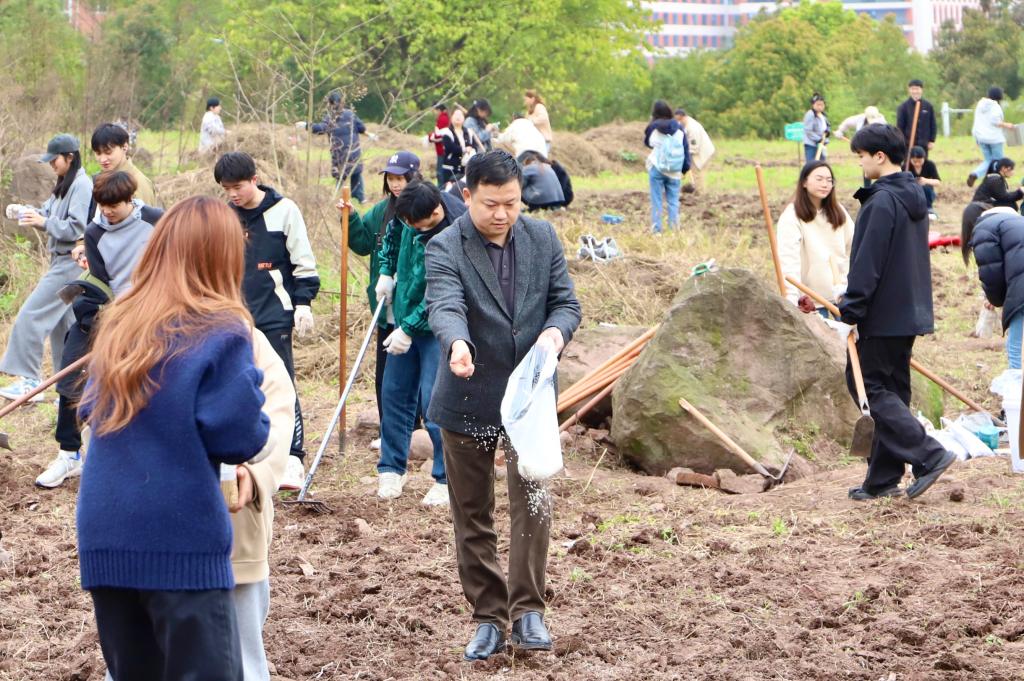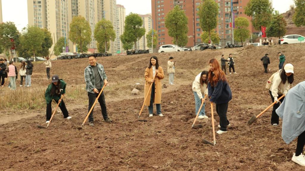学生们以班级为单位分工进行翻土、除草、施肥等劳动。学院领导和学工办全体老师共同参与劳作,与同学们讨论耕作的操作要点。此次活动,不仅让学生们相互合作体验了劳动的辛苦与快乐,更能让他们在劳动中提高团队协作能力,培养责任感和互助精神。