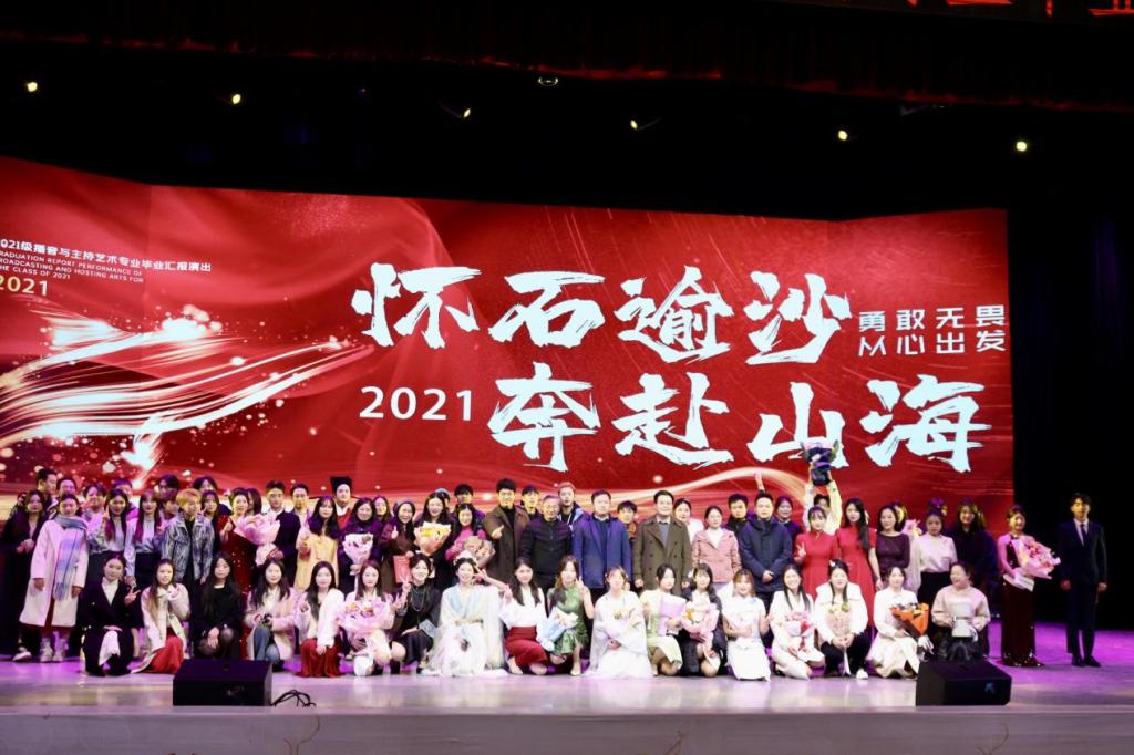 本次展演活动以“怀石逾沙,奔赴山海”为主题,分为“正青春·绽光彩”和“怀奇志·展未来”两个篇章,共计十二个展演作品。学生将经典传统文化与新颖表演形式相融合,结合时下热点话题和校园生活场景,进行生动诠释。在近两个小时的演出中,学生们用饱满的热情、专业的素养,展示了他们在播音与主持艺术专业四年的学习成果。本次展演活动从策划、组织到排练、演出,均由学生自主完成,专业教师全程进行指导,展示了播音与主持艺术专业师生扎实的专业素养。