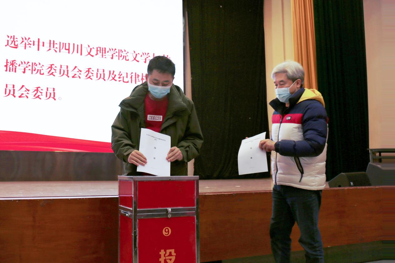 大会严格按照《中国共产党章程》规定的选举办法和选举程序,坚持公平、公正、公开的原则,以无记名投票、差额选举的方式进行,选举中共四川文理学院文学与传播学院委员会委员及中共四川文理学院文学与传播学院纪律检查委员会委员。大会选举冉林、曾宪文、张波、张俊峰、何斌、成立、胡郑丽、郑岚心、安前进九名同志为中共四川文理学院文学传播学院委员会委员,张俊峰、丁伟、文敏熙三名同志为中共四川文理学院文学与传播学院纪律检查委员会委员。