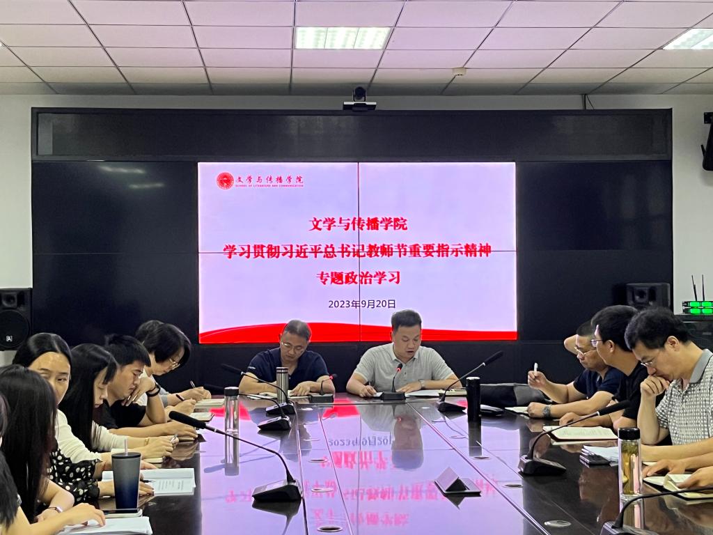 9月20日,我院在艺术传媒大楼1007会议室组织开展了学习贯彻习近平总书记教师节重要指示精神专题政治学习。会议由学院党委书记冉林主持,全体教职工参加学习。