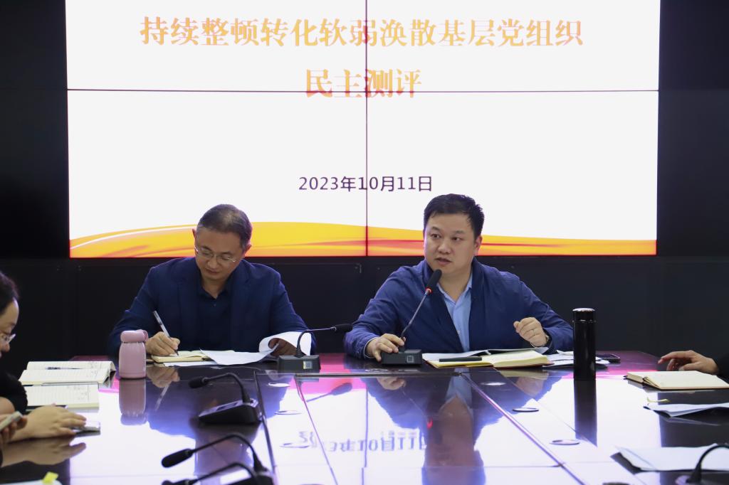 为加强基层党组织建设,2023年10月11日下午,我院在1007会议室召开持续整顿转化软弱涣散基层党组织民主测评会。本次会议由党委书记冉林主持,全体教职工及学生党员代表参加会议。