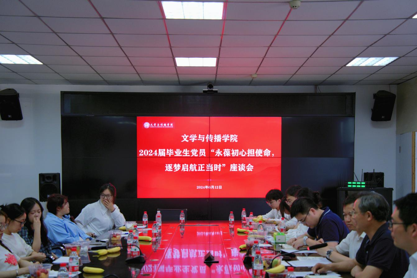 为加强毕业生党员思想建设,永葆初心使命。6月12日,学院党委在艺术传媒楼1007会议室召开“永葆初心担使命,逐梦起航正当时”2024届毕业生党员座谈会。学院党委书记冉林、院长曾宪文、毕业班辅导员及全体毕业生党员参加,学院党委副书记张俊峰主持会议。