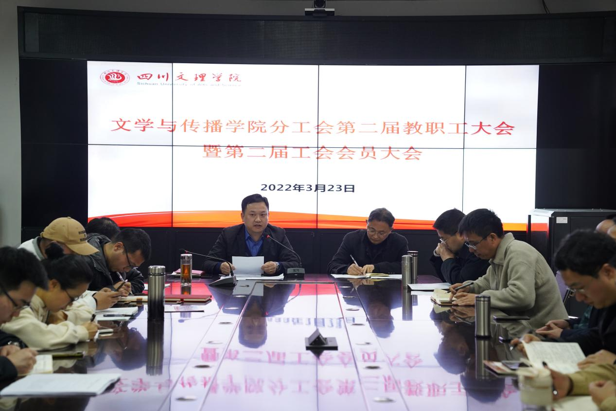 3月23日,文学与传播学院党总支在艺术传媒大楼1007会议室召开第二届教职工大会暨第二届工会会员大会。会议由文学与传播学院党总支书记冉林主持,全院教职工参加。